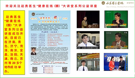 为更好的进行前列腺相关疾病诊疗方法的学术及科普推广,山东省立医院泌尿外科赵勇主任医师自2018年开始,发起了“健康在线(腺)”公益讲座,并担任主讲。
